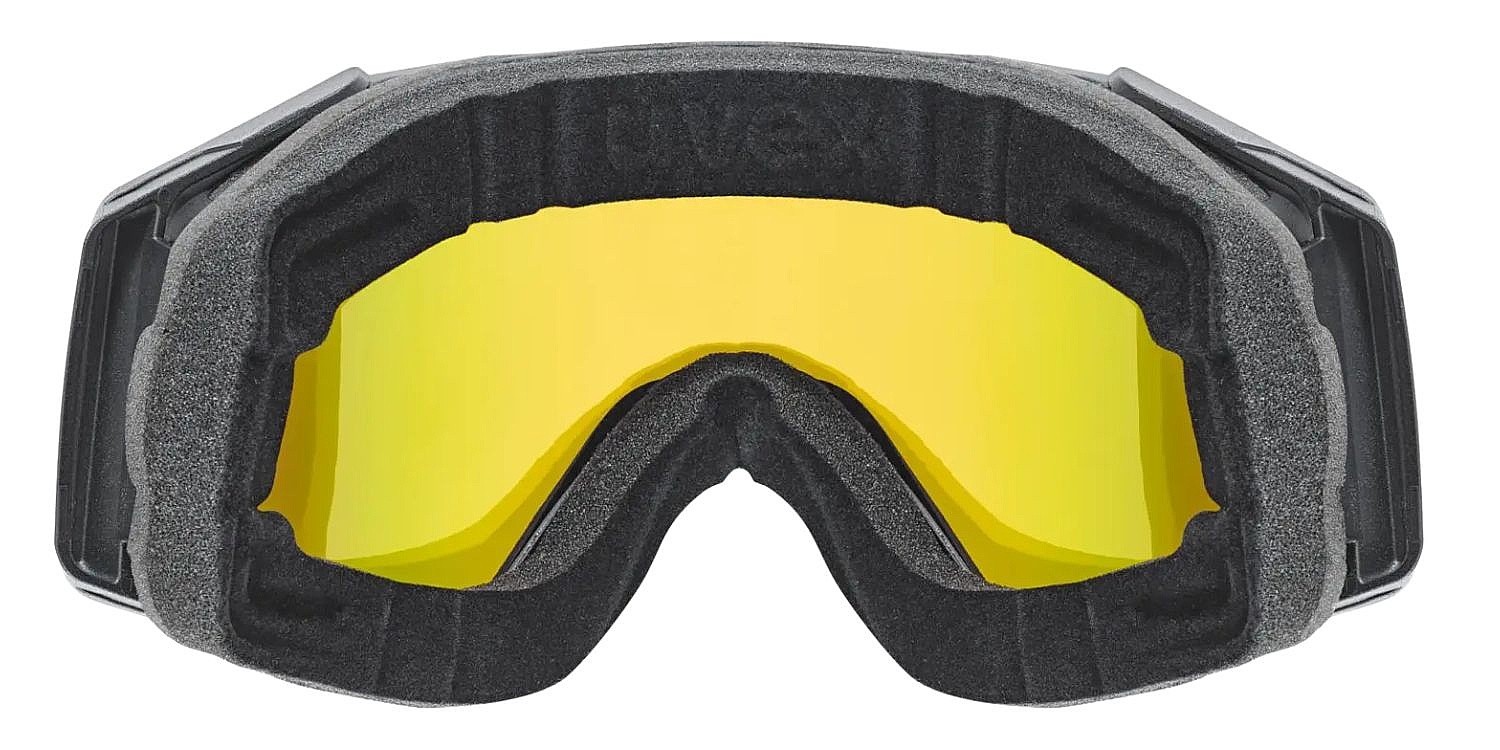 Uvex Gravity FM Snowboard/Ski Goggles - Wide Panoramic Field of View - Uvex Gravity FM delivers a cinematic on-slope experience at a great price. The cylindrical, fully mirrored lens provides a wide, distortion-free image while working effectively in both clear and variable weather. Of course, it offers 100% UVA, UVB and UVC protection up to 400 nm, which goes above and beyond conventional standards. Uvex supravision® technology keeps the lenses fog-free, so even with fast driving and temperature changes, vision remains clear. The OTG construction makes them ideal for skiers and snowboarders with dioptric glasses. Soft velour foam ensures a comfortable fit on the face all day long.